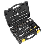 Chrome Vanadium steel sockets from 4-32mm hardened and finished in high chrome for corrosion resistance. Two high quality ratchet wrenches in 1/4" and 1/2"Sq drive, extension bars, sliding T-bar, universal joints, ratchet screwdriver with bits and spark plug socket are included. Supplied in storage case.