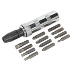 Contents:1/2"Sq Drive Impact Driver, Bits; Slotted - 5, 6, 8, 10, 11mm, Phillips - #1, #2, #3, #4, Hex - 4, 5, 6, 8mm, Adaptor; 1/2"Sq Drive x 8mm Hex