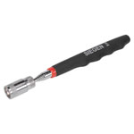Heavy-duty six section telescopic pick-up tool. Large Ø14mm magnet with 3.6kg capacity and recessed LED to illuminate target area. Textured, contoured handle for added comfort. Knurled twist on/off switch for ease of use.