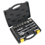 | Contents: | Standard Sockets; 10, 11, 12, 13, 14, 15, 16, 17, 18, 19, 21, 22, 24, 27, 30, 32mm, Spark Plug Sockets; 16, 21mm, 1/2"Sq Drive Flip Reverse Quick Release Ratchet Wrench, Extension Bars; 125, 250mm, Universal Joint |