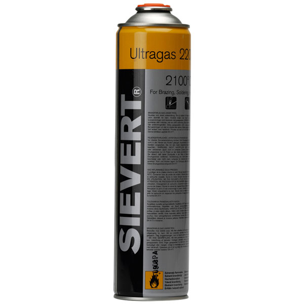 The Sievert 2205 Ultra Gas Cartridge has a gas mixture of propane, butane and acetone to give a flame temperature of 2,100°C. It also has a foam insert to enable the cartridge to be used upside down for longer periods.