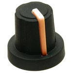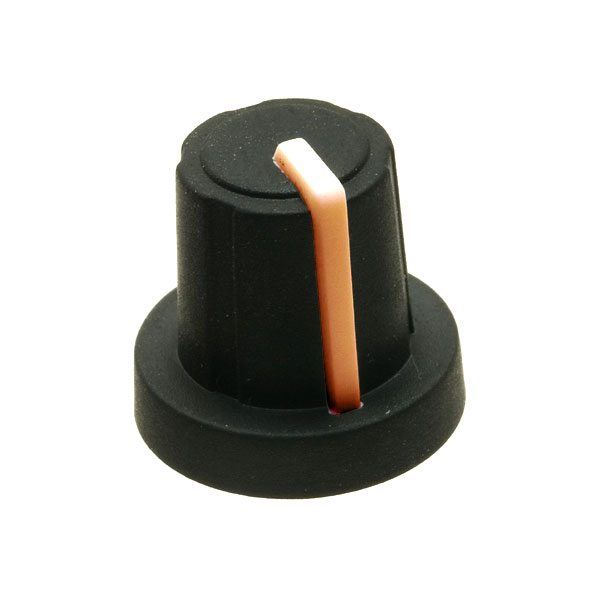 Black Control Knob Soft Touch Mixer Style with Orange Pointer 13mm from Safim - a traditional 13mm mixer-style knob from Sifam has a soft-touch finish and a built-in nut cover. To enable accurate positioning, the Orange pointer extends from the top centre of the knob down the side of the knob body.
