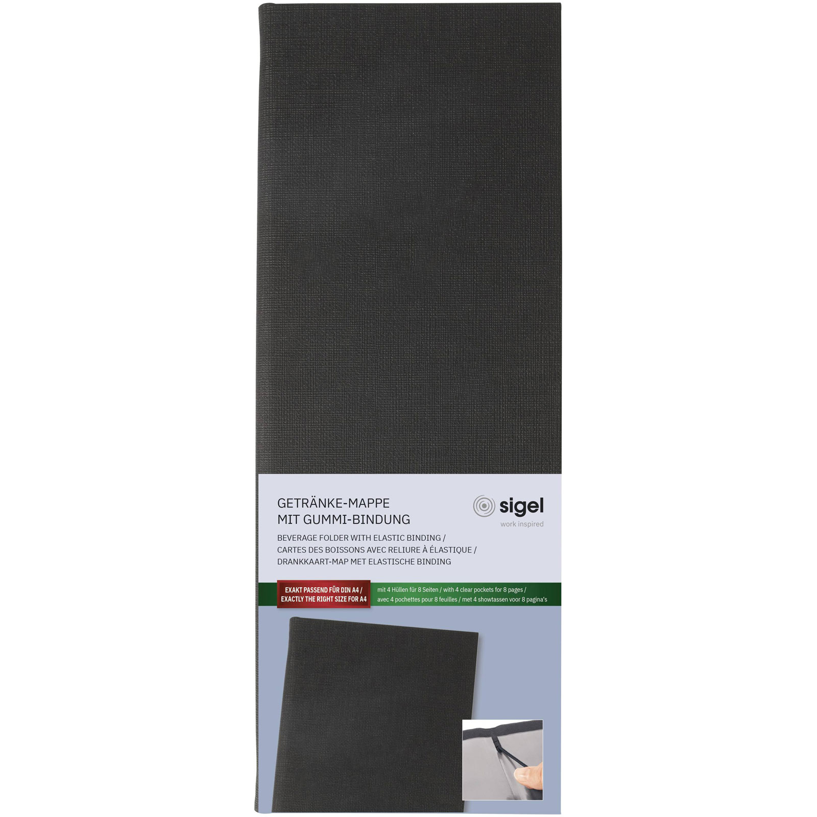 Sigel GM100 Drinks menu folder A4 rubber binding black incl 2 pockets