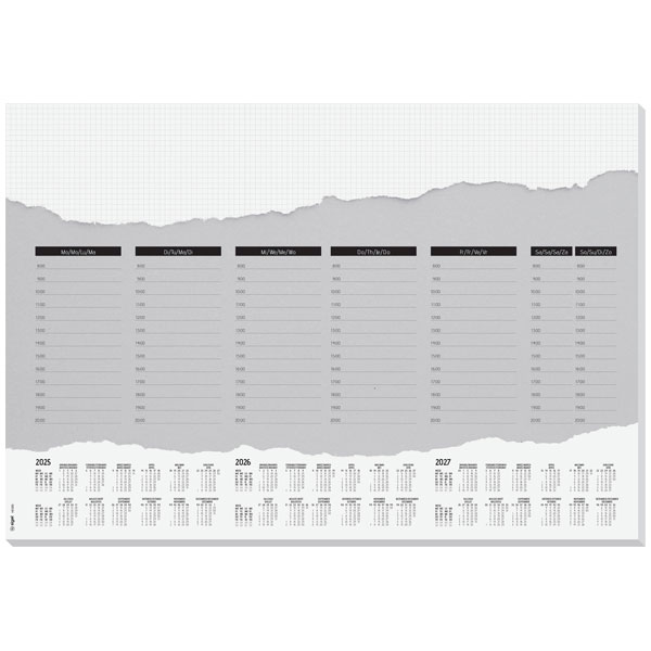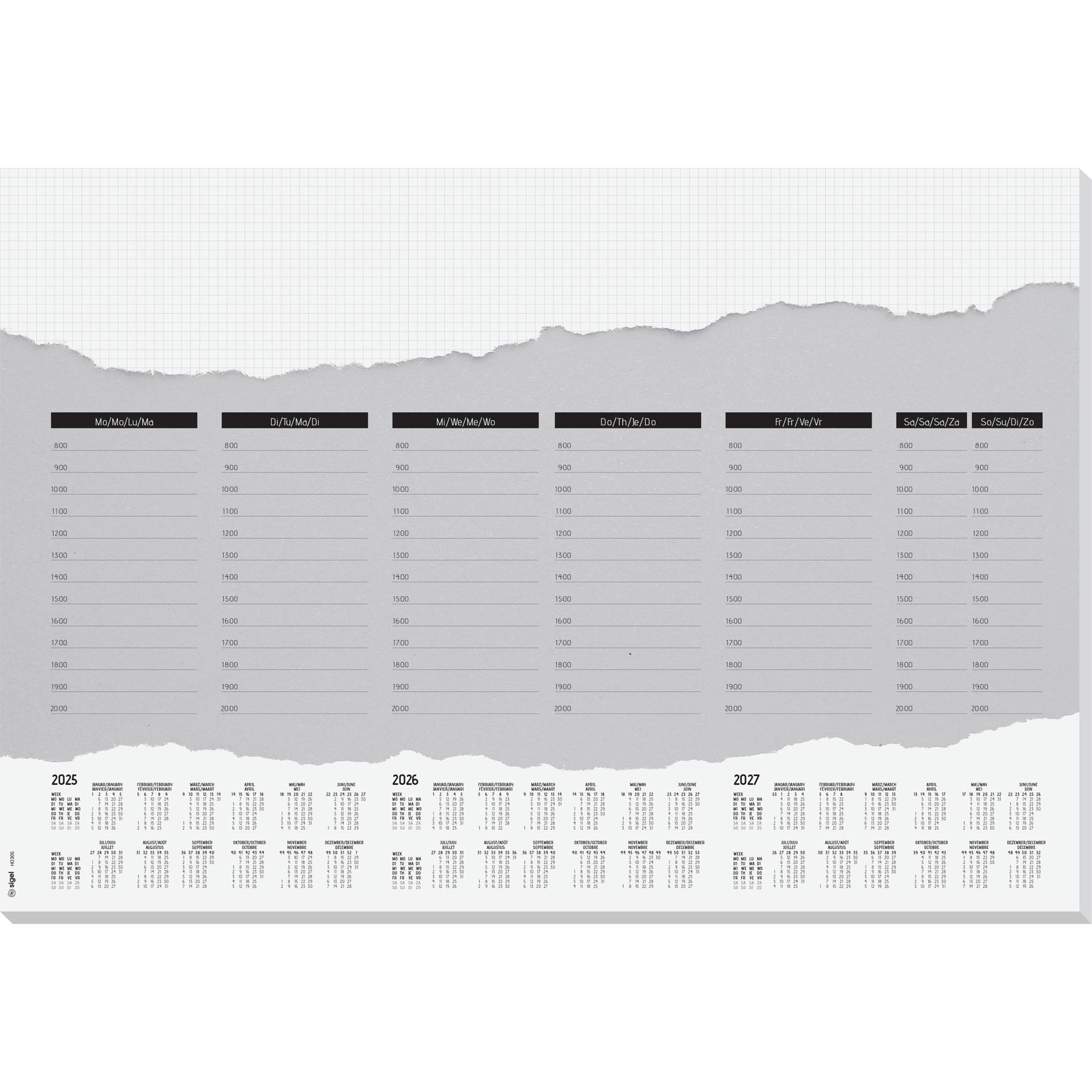 Sigel HO305 is a desk pad three-year planner that measures 595 mm in width and 410 mm in height. The planner is designed with a focus on durability and functionality, featuring high-quality white paper that provides a smooth writing surface. This planner is particularly suited for engineers and professionals who require an efficient method to manage long-term projects, schedules, or production timelines over a three-year period. Its robust construction ensures it can withstand the demands of daily office use, and its clear layout aids in the precise documentation and quick reference of important dates and deadlines.