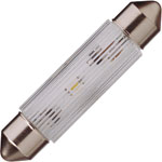 A 0.4W 24V ultra green LED festoon lamp with dimensions of 8 x 39mm. This single-chip LED lamp has an integrated bridge rectifier to make possible AC or DC operation. Low current consumption and long lifetime make it suitable for a wide range of applications.