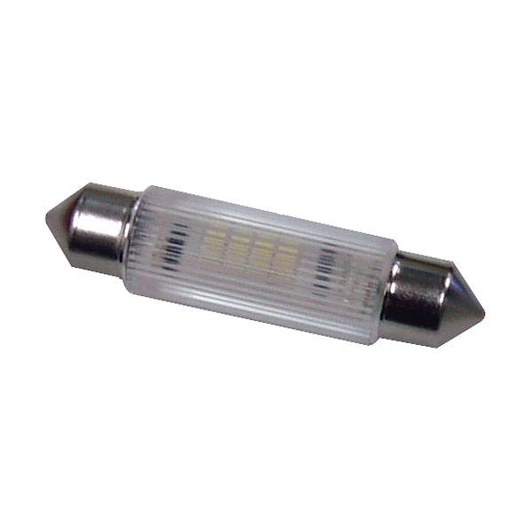 A 0.25W 12V red LED festoon lamp with dimensions of 11 x 39mm. This 4-chip panel indicator features bright LEDs and an integrated rectifier, allowing it to work at both AC and DC. The lamp has low current consumption and a long life, making it suitable as a replacement for an incandescent lamp in a wide range of applications.