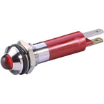 A red LED panel indicator that features a prominent LED in a chrome plated brass housing that has an IP67 protection rating. The super bright LED and robust housing design makes this signal lamp suitable for high levels of ambient light in both indoor and outdoor situations.