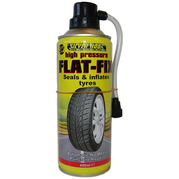 Silverhook Flat Fix is used for quick and easy, temporary tyre puncture repair and inflation. Seals and inflates tyres up to 15in and is suitable for tube or tubeless tyres. Easy-to-use in an emergency situation with no tools or tyre changing required, simply connect to the valve of the tyre and push the button. Flat Fix is an emergency temporary fix and you should replace or repair the tyre at the earliest opportunity.