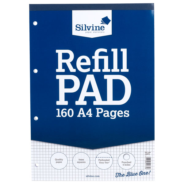 Silvine A4RPX A4 Topbound Refill Pad - 5mm Squared 160 Pages (80 Sheets)