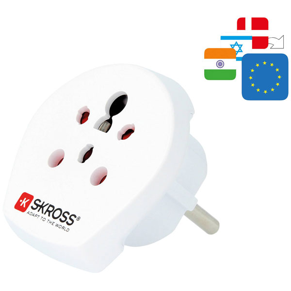 Skross 1.500217-E Travel Adapter India Israel-Denmark to EU devices