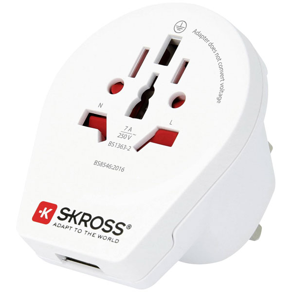 Skross 1500267 Travel Adapter World to UK USB Charge & Connect Globally