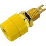 Yellow 4mm gold-plated brass sockets from SKS Hirschmann, with insulated head and ring for installation in equipment chassis and switch panels with a wall thickness up to 2mm.