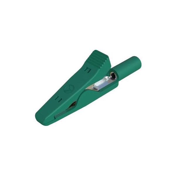 The SKS Hirschmann MA 2 VA gn is a green clip terminal with a 2 mm socket suitable for CAT I applications. This crocodile clip features robust construction and reliable connectivity for various electronic testing tasks. It is commonly used in laboratory settings and electrical testing environments.