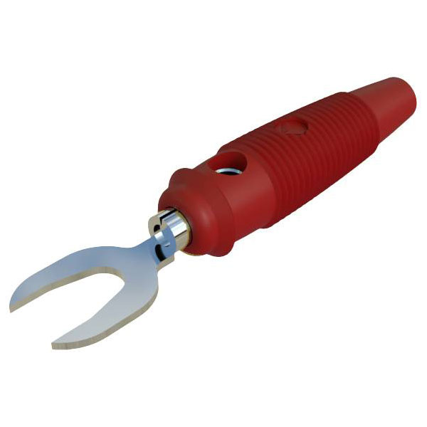 The SKS Hirschmann jack plug is a red, straight safety connector suitable for laboratory use, compatible with both 2 mm and 4 mm jacks. It ensures reliable electrical connections and is designed with safety in mind. Typically, this plug is used in testing environments and equipment setups requiring dependable connectivity.