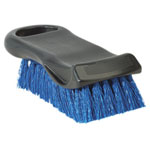 Sturdy bristles to scrub away stains from upholstery, floor mats and vinyl tops. Unique spot scrubber on handle. Palm-sized handle contoured to fit fingers.