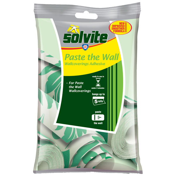 Solvite Paste The Wall Wallpaper Paste is in less than 2 minutes. Easy to mix and apply. Thick, smooth, lump free formula. No pasting table required. Ideal for 'Paste The Wall' and non-woven wallcoverings.