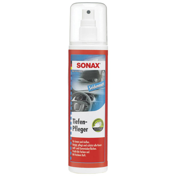 Sonax 383041 is a plastic and rubber care product that provides a semi-gloss finish. It is designed to clean and maintain plastic and rubber surfaces on vehicles. This maintenance emulsion is ideal for restoring depth and shine to car interiors and exteriors.