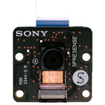 The Spresense camera module board features a Sony 5 Mpixel image sensor with an onboard encoder for pictures in JPEG, RAW, Y/C or RGB format. It connects directly to the Spresense main board through a dedicated parallel interface.