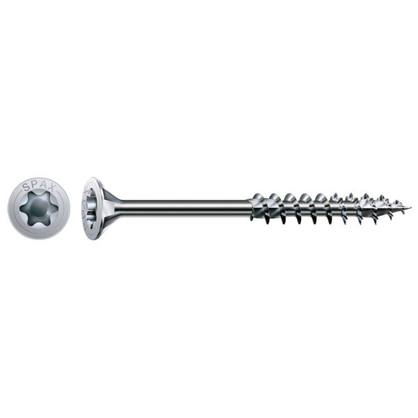 The flat countersunk head has a polygonal underside ("pockets") that mills its way into the wood and can therefore be countersunk without having to pre-drill the screw hole.