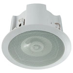 A rugged ceiling-mounting loudspeaker in an enclosed plastic housing. The loudspeaker is ideal for environments where dust, rough contamination, humidity etc., are present. The speaker is suitable for voice as well as music and thanks to its neat panel-mount fixing, no fixing bolts are visible from the outside.