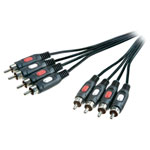 An audio extension cable with 4 phono plugs on each end, suitable for connecting 2 stereo ports.