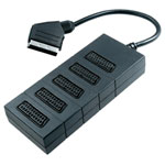 An adaptor with a Scart plug on one end and 5 Scart sockets on the other.