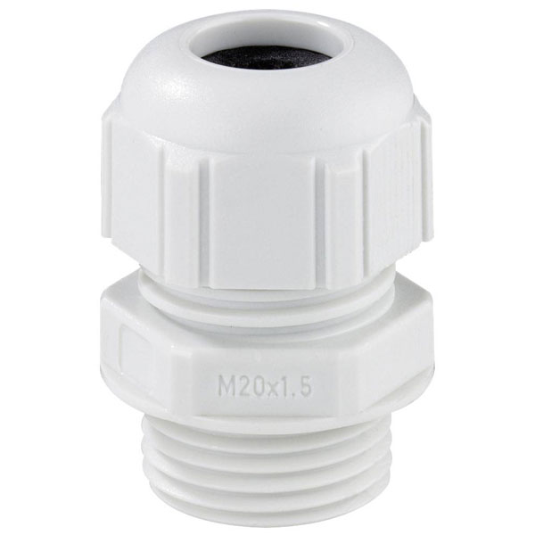 The Spelsberg 24741601 Cable gland provides shockproof functionality and strain relief, made from light grey plastic and sized M16. It is suitable for securely managing cables in electrical installations, ensuring durability and reliability. This component is ideal for use in environments requiring protection against mechanical strain and vibrations.