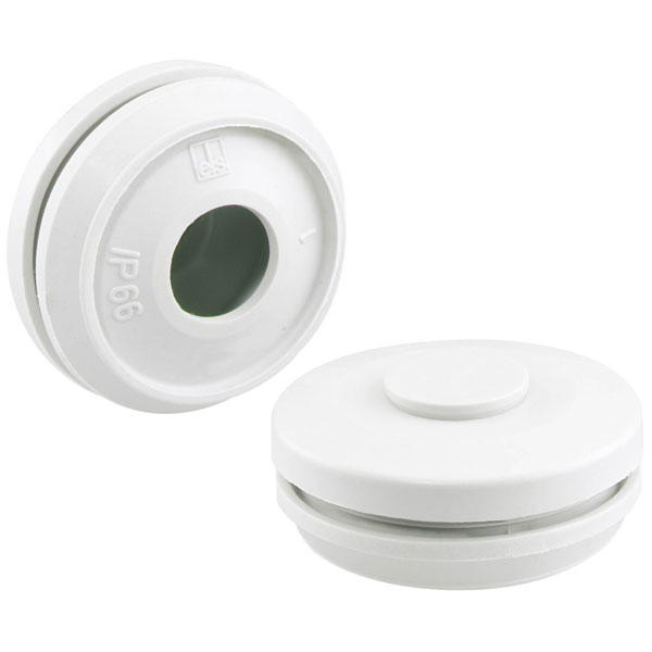 The Spelsberg twin membrane plug is a white, durable component ideal for sealing and protecting cable entries. It is compatible with M20 threaded connections and is typically used in electrical enclosures. This plug ensures a reliable seal to prevent dust and moisture ingress.