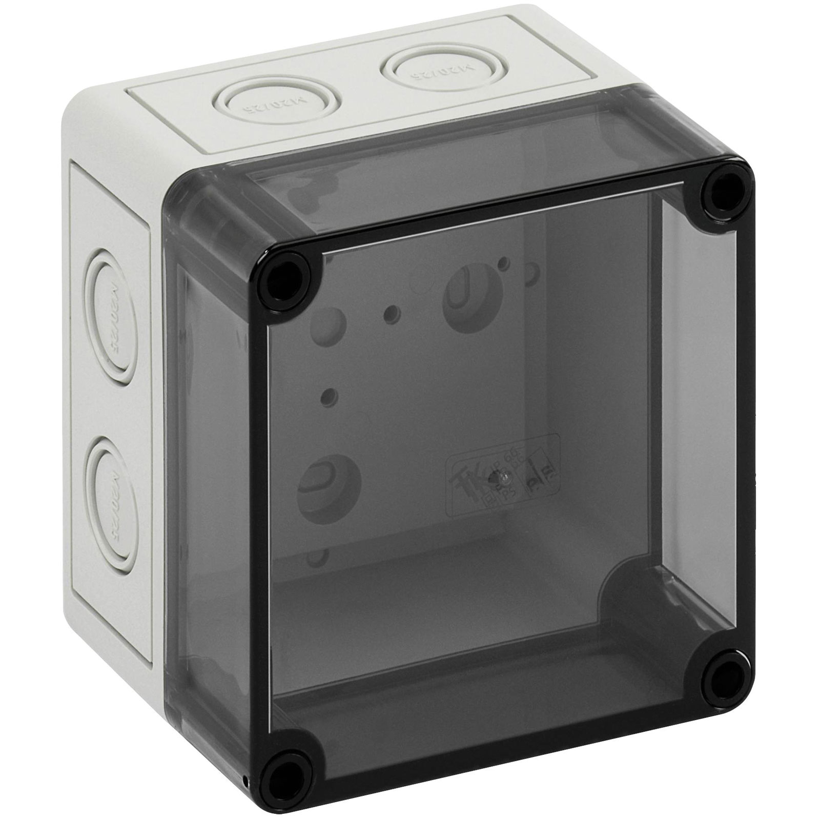 7xM20/25 Polycarbonate (cover)/polystyrene (bottom box) With the knockout, transparent cover TK PS 1111-9-tm PS 1111-9-tm Enclosure Grey-white (RAL 7035) (L x W x H) 110 x 110 x 90 mm 90mm IP66 110mm 110mm