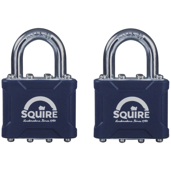 The Squire Stronglock Laminated Padlocks are a medium to high security durable padlock, with a hardened steel shackle with a covered steel padlock body with anti corrosion finish. The 4-pin tumbler lock mechanism gives over 1,000 key variations.