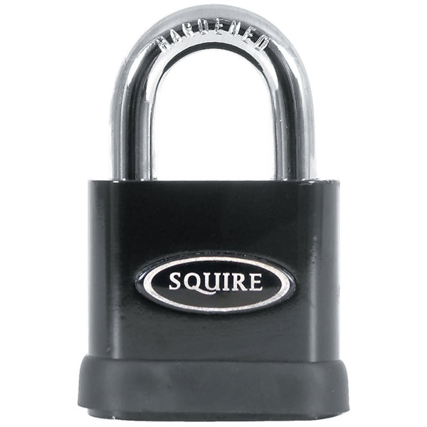The Squire SS50P5 Stronghold Solid Steel Padlock 50mm has a 5 pin tumbler and offers up to 1,500 different key variations. It has a security rating of CEN 4.