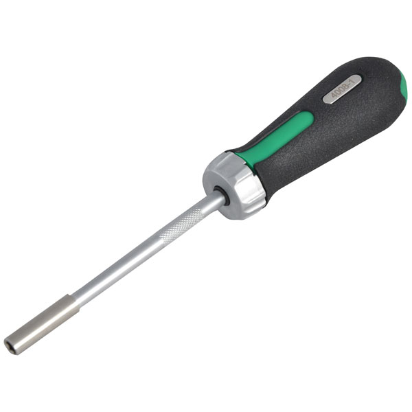 The Stahlwille 18120001 Ratchet Bit Holder has an ergonomically designed, non-slip 2 component handle for optimum force transmission. The handle features a storage compartment which can hold up to 6 bits. The bit holder has a knurled spin section for faster screwdriving and has a heavy-duty ratchet mechanism with 48 teeth (7.5° working angle).