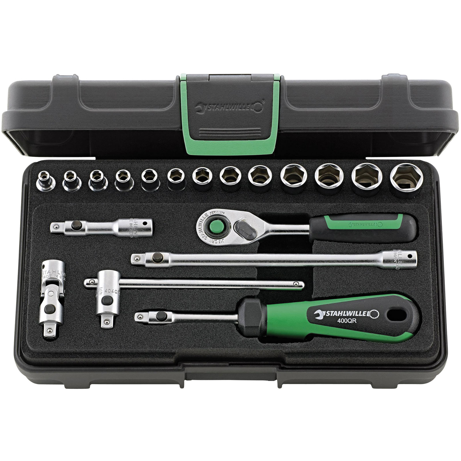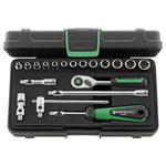 19-piece socket wrench set, Type 1/4" square, in a robust, stackable ABS-plastic box.