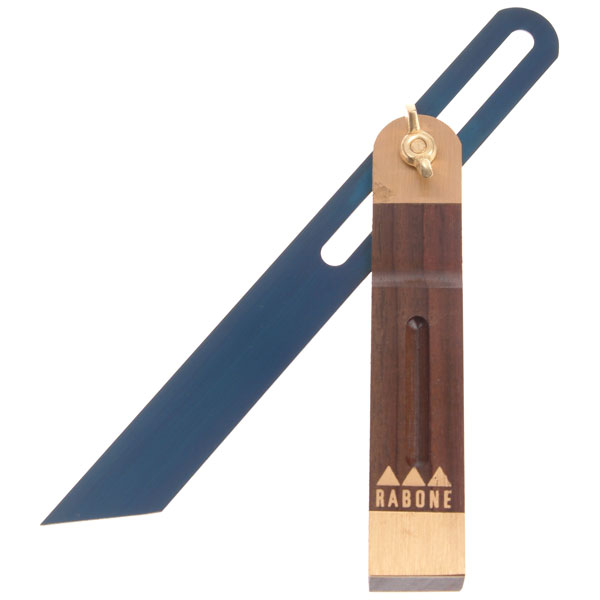 Hardwood stock and brass ends with wing nut adjustment for quick blade setting. The offset slot in the blade enables a line to be drawn the full length of the blade without interference from the stock.