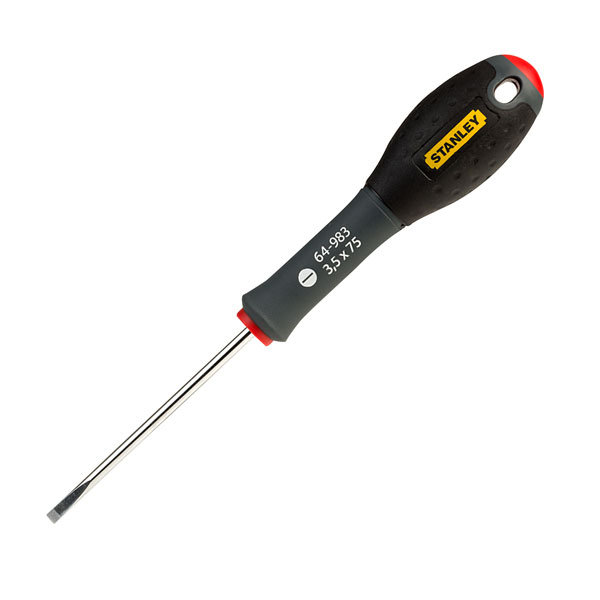 Parallel Slotted Screwdriver, 3.5mm, 75mm Blade Length, Chrome Vanadium Steel Blade Material, Soft Grip Handle for Perfect Grip Plus Reduced Fatigue, Colour Coded Ends for Easy Identification of the Right Screwdriver for Each Screw Type, Smooth Domed End for Fast Spinning Action, Speed and Comfort, Large Diameter Handle Offers Greater Torque Needed for Driving Wood Screws, Handle Moulded Direct to Bar with Virtually Unbreakable Bond, Highly Reliable and Providing Extra Long Life