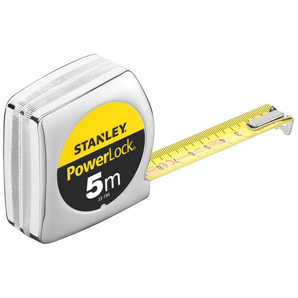 The Stanley Powerlock 1-33-194 Tape measure offers a length of 5 metres and is known for its durability and accuracy. It is designed with a robust chrome case and a Tru-Zero hook for precise measurements. Ideal for construction, carpentry, and DIY tasks, it provides reliable performance.