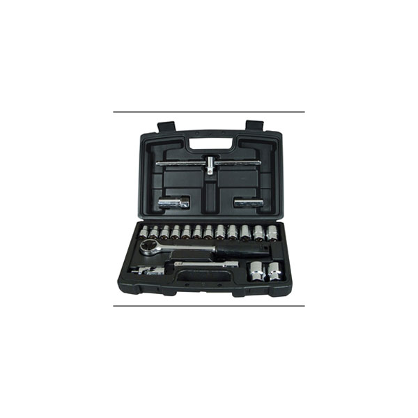 A 20 piece 1/2in square drive metric socket set. All sockets