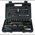 A 50 piece 1/4 in and 1/2 in square drive socket set that also