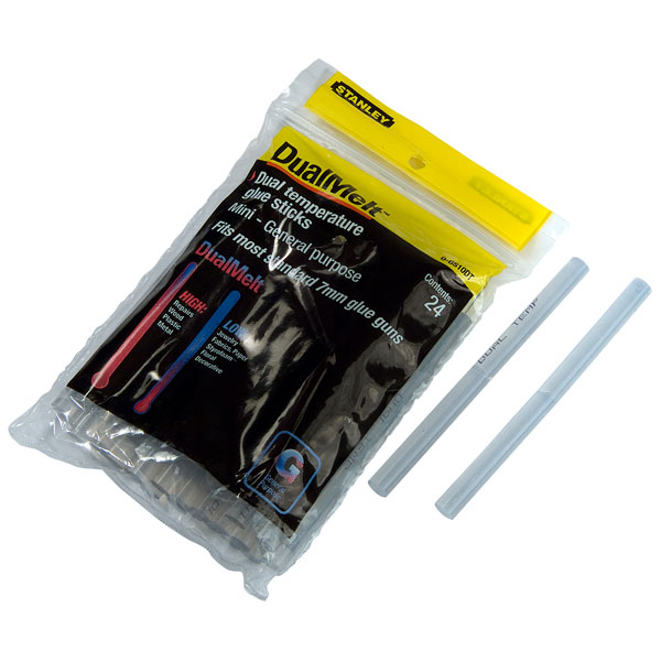 The Stanley dual melt, all-purpose glue sticks are suitable for a wide variety of glueing applications to suit most craft, hobby and household requirements.