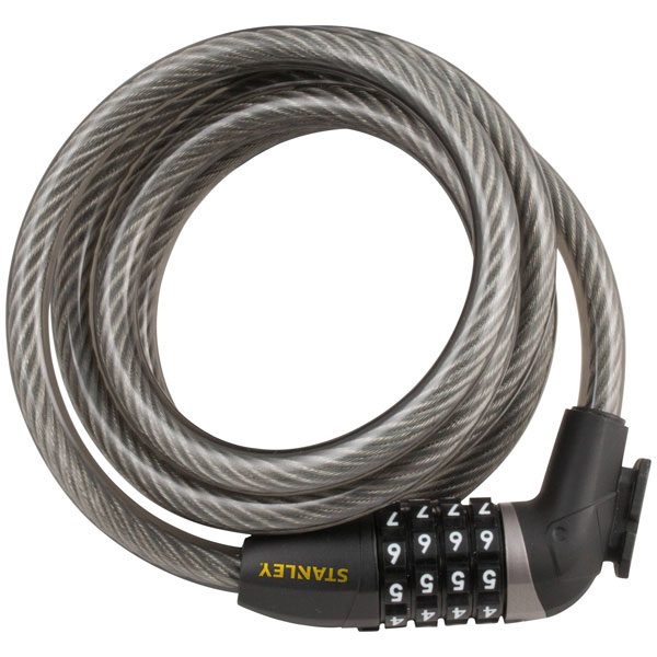Stanley manufactures the S755-204 steel cable lock, a robust bicycle lock designed for theft protection. This combination lock features sturdy construction, providing reliable security. It is ideal for safeguarding bicycles against theft.