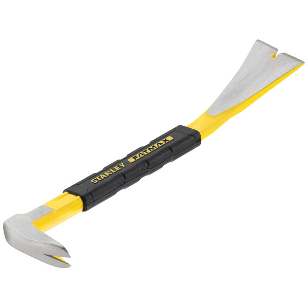 This Stanley FatMax® Moulding Bar is manufactured from spring steel for durability with a high visibility powder coated finish and polished tips. With polished bevel claws, one has a wide flat surface to cleanly pry moulding and trim reducing material damage. The non-slip grip provides increased leverage.