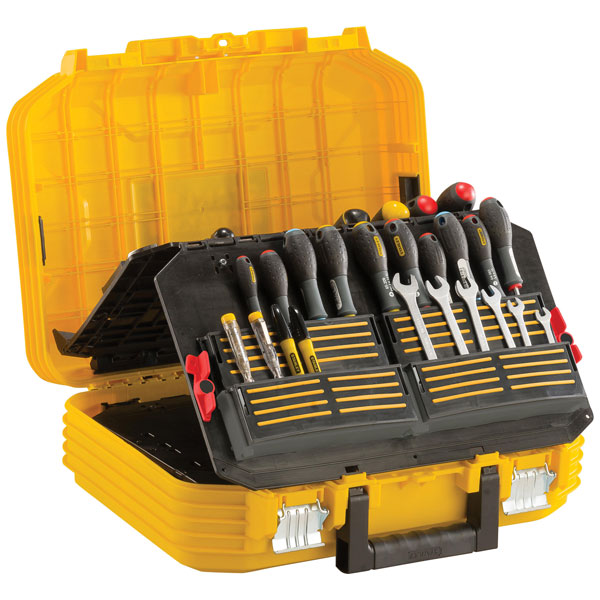 The Stanley FatMax® Technicians Suitcase is made from tough, reinforced fibreglass and is fitted with durable metal latches, a name tag holder and a padlock eye for increased security.