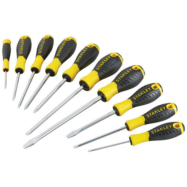Stanley Essential Screwdrivers have bars made from Chrome Vanadium Steel, which resists bending and snapping. The handles are made from Polypropylene, with TPR overlay for increased comfort and reduced fatigue.