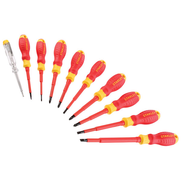 Stanley FatMax® VDE Insulated Screwdrivers feature slim insulation which allows access without modification and safe working to 1,000V. Their tri-material handles with soft grip, provide torque transmission and control. Hardened tips ensure a longer working life.