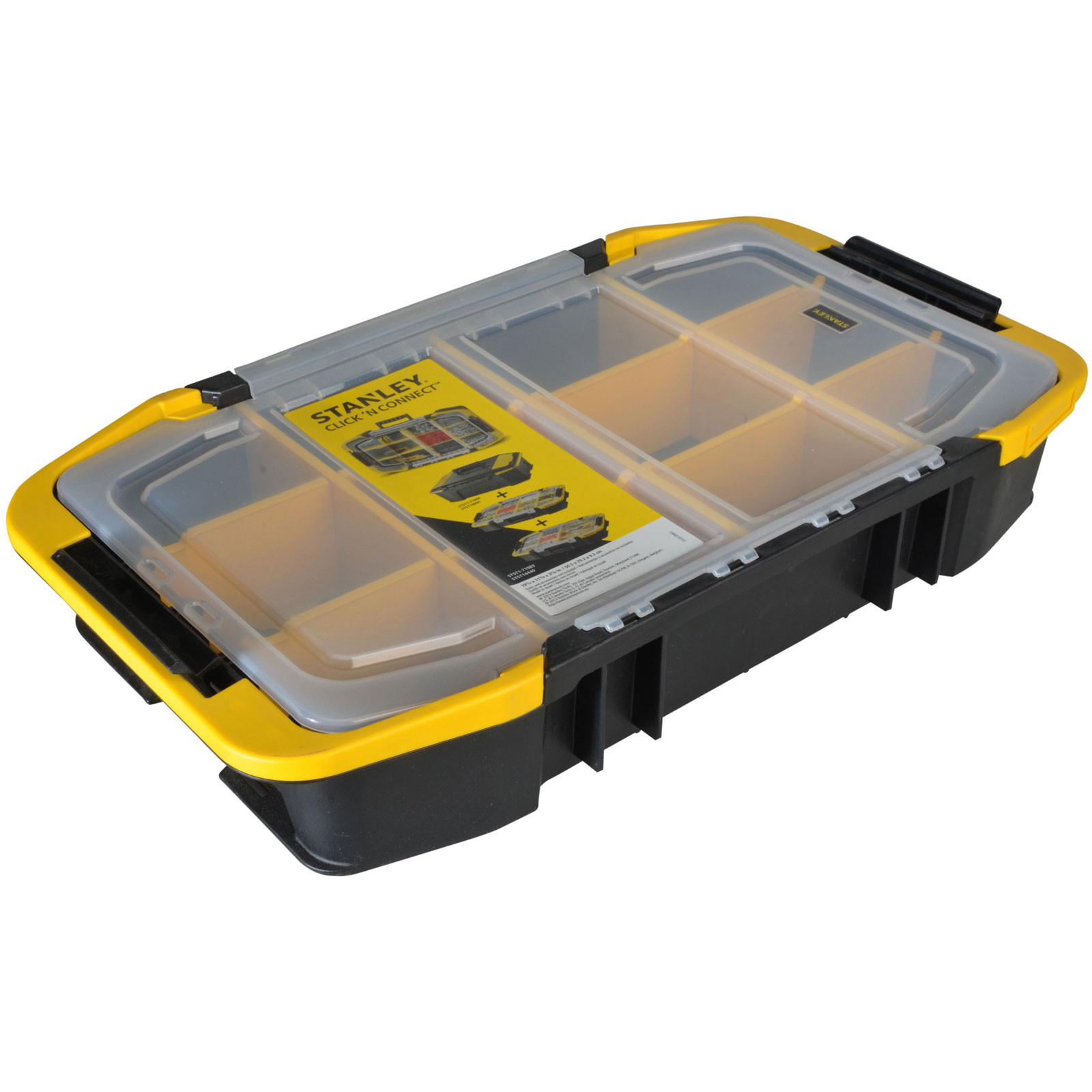 The Stanley Click & Connect™ Organiser allows easy access to tools. It features removable latches which allow easy connection to other Click & Connect™ toolboxes.
