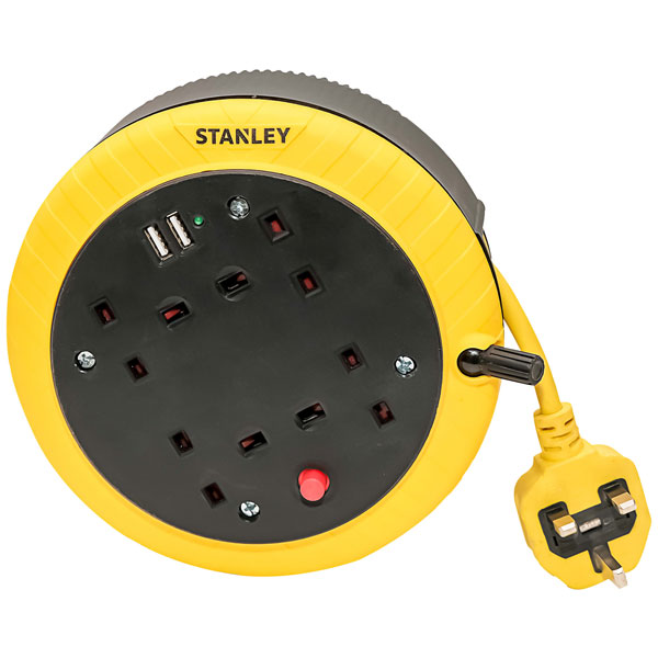 Stanley SXECGK2OHJE Cable Reel 240V 13A 4-Socket + 2 USB 5m