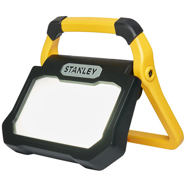 The STANLEY® Folding Worklight has a lightweight yet durable polycarbonate body. It offers 2 modes of operation, on/off. A diffuser ensures comfortable working illumination. It has an IP54 rating, indicating it is protected against dust and water splashes, making it suitable for use in various environments. Operates on mains power with a voltage range of 220-240V and a frequency of 50/60 Hz.