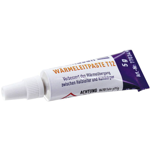 Stannol T12 Thermally conductive paste enhances heat dissipation and thermal transfer in electronic components. This thermal grease is ideal for component cooling, such as in transistor and electric component applications. Stannol's product improves heat conduction and cooling efficiency by facilitating effective heat sink functionality.