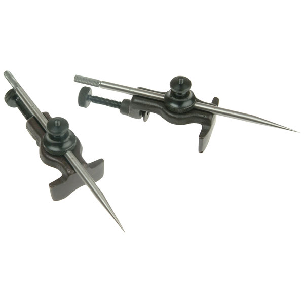 Useful for laying out and scribing circles beyond the capacity of ordinary dividers. Clamping device firmly holds points, which can be replaced with a pencil.