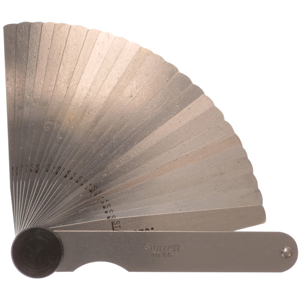 Used to adjust tappets, spark plugs, distributor points, checking bearing clearances and gear play, fitting pistons, rings and pins and gauging narrow slots. Leaves are tempered steel, easily removed and replaced. Locking device on all sets.